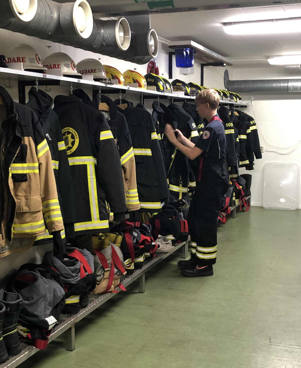 Det roligaste med Ungdomsbrandkåren då? undrar jag. Lykke, 15, framhåller att det är en bra gemenskap och att man har roliga aktiviteter. Jacob, 14, tycker att det bästa är att man får lära sig nya saker. På läger i Sverige och utomlands lär man känna nya kompisar i blandade åldrar. Man samarbetar och får lära sig att lösa problem i grupp. De föräldrar som följer med på resor bor för sig själva och ungdomarna bor med lagkompisar, två eller tre.