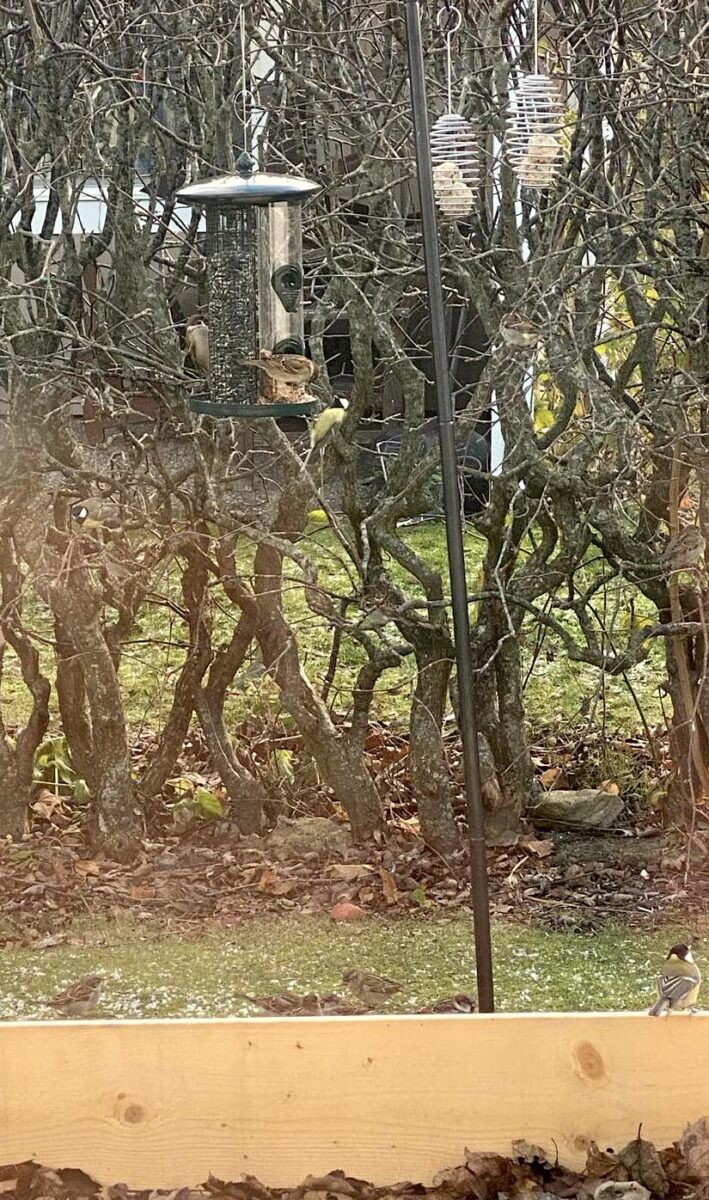 Jag har också ”levlat” upp i vuxen- eller pensionärspoäng. Härom veckan körde jag inom en stor butik som har det mesta. De har även utrustning till att utfodra småfåglar under vintern. För 600 kronor fick jag ett startpaket med fågelbord, fröer och talgbollar. Det vimlar av fåglar runt bordet och i fönsterkarmen har jag ett block där jag skriver upp vilka matgäster som kommer. Det är mycket intressant och avkopplande att stå med lördagskaffet i handen och spana in fåglarna. Idag ska jag linda in stolpen till fågelbordet med granris. En kompis till mig sa att det skulle vara bra eftersom de då kunde gömma sig i riset och på så vis bli fler runt bordet.