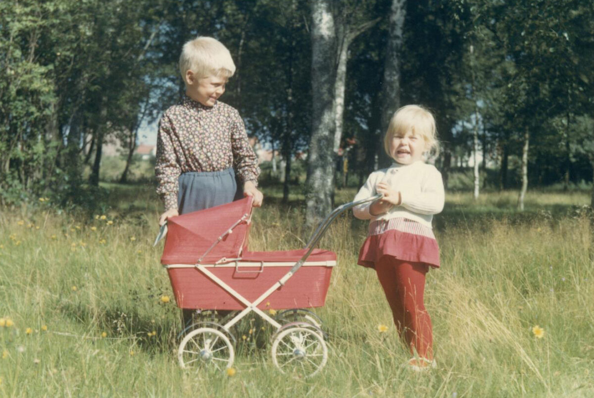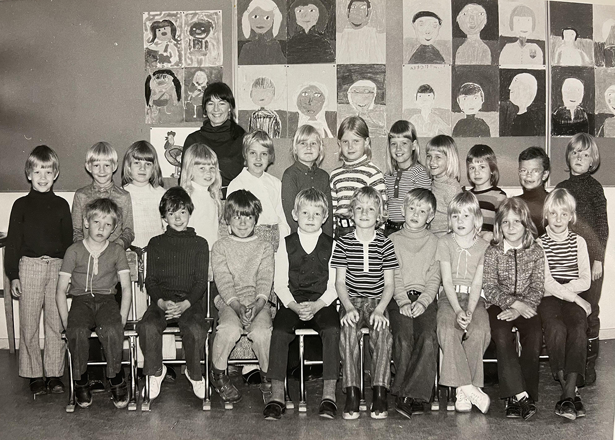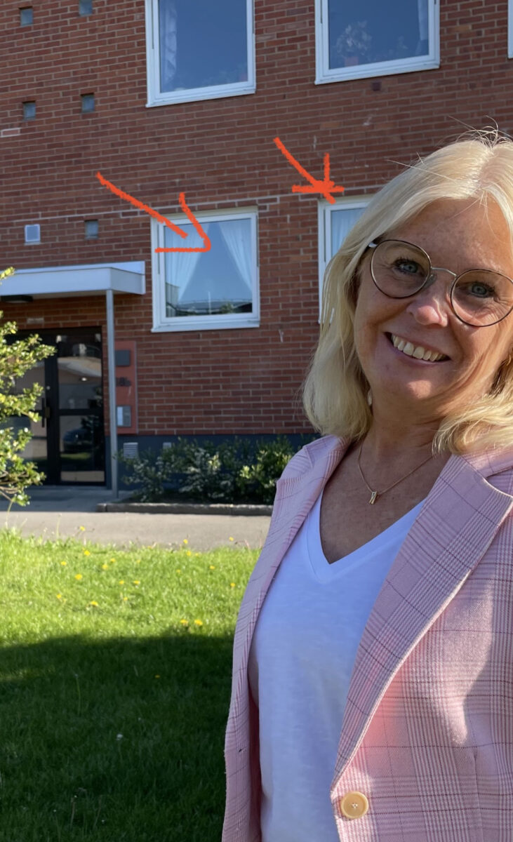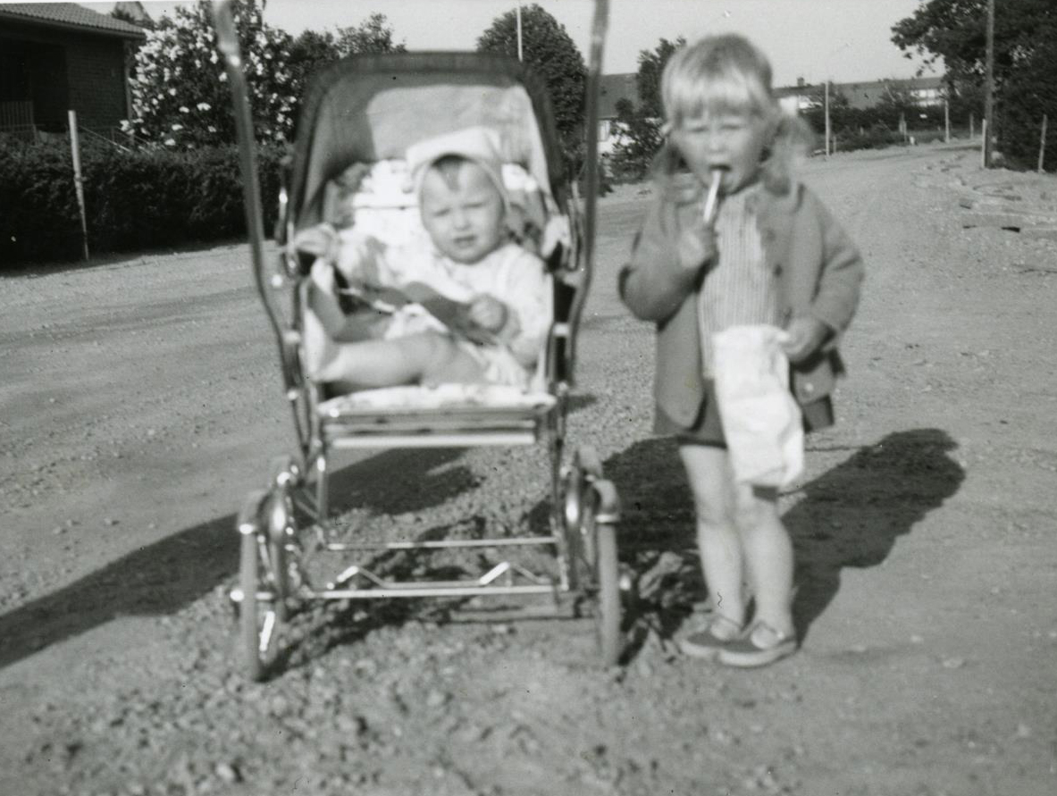 För vid den tiden rådde brist på bostäder i hela landet, även i Laholm, så mina första månader bodde vi på farmors och farfars gård i Daggarp. Så snart den första längan av Glänningehus stod klar, den med gaveln mot Violvägen, flyttade vi in på första våningen innanför teakporten där den vita lampan var prydd med plastsiffrorna 18B. Fyra personer i en tvåa och massor av barn att leka med när jag blev lite äldre. Min första kompis, Annette, bodde i dörren bredvid, och mellan oss var bara ett sopnedkast och en knackning på dörren. Ovanför bodde ett par bröder som var lite äldre än oss, och vi kunde knacka i taket/golvet för att signalera med varandra, vilket var jättespännande! Två knackningar i golvet betydde ”god natt” och det var nog tillräckligt för att lilla jag skulle krypa i säng.