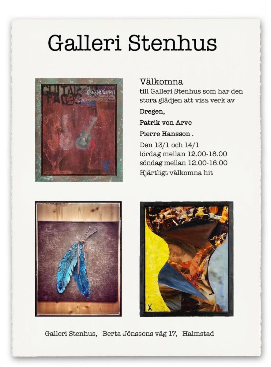 För er som vill ta en närmare titt på Pierres konstverk så öppnar utställningen på lördag klockan 12.00 och har öppet till 18.00. Det kommer även vara öppet under söndagen och då är öppettiderna 12.00 till 16.00.